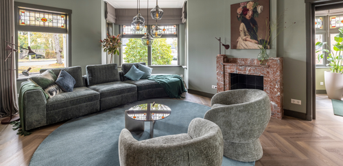 Frans Uyterlinde is interieurstylist en meubelontwerper. Hij werkt al vele jaren voor vtwonen en verzorgt make-overs voor het tv-programma "Weer verliefd op je huis". Hij woont met grote liefde Theo in een Amsterdams penthouse van 168 vierkante meter met een dakterras. Frans: ‘Thuis is een plek om te aarden. We komen hier tot rust en delen het graag met vrienden. Ik begin de dag met koffie en eindig de dag met Theo en thee op mijn Eames-stoel. Vanuit daar heb ik een prachtig uitzicht over de stad.’